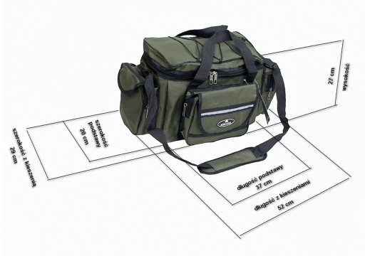 Uniwersalna torba przeznaczona do przechowywania różnego sprzętu wędkarskiego. Wyposażona w 2 boczne kieszenie , 1 kieszeń przednią