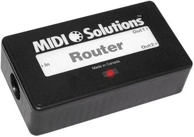 Router firmy MIDI Solutions to urządzenie typu router/filtr danych MIDI z jednym wejściem i dwoma wyjściami. Wybrane komunikaty MIDI mogą być przekazywane do jednego z dwóch / obu / żadnego z dwóch wyjść MIDI tego urządzenia.