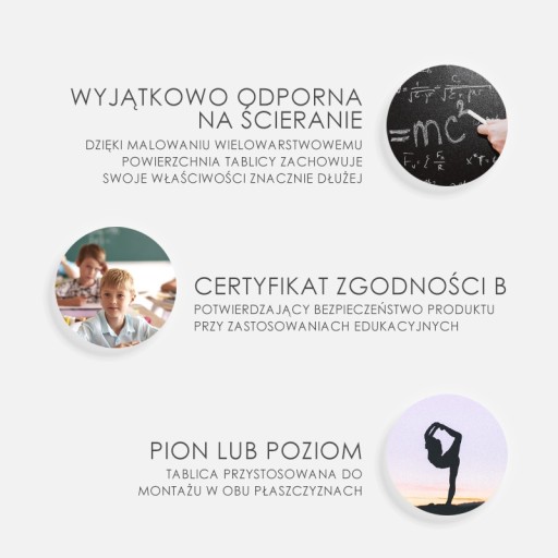 Każdy produkt MemoBe to gwarancja wysokiego komfortu pracy podczas codziennego użytkowania. W produkcji wykorzystywane są tylko materiały wysokiej jakości, które pozwalają na udzielenie okresu gwarancji nawet do 25 lat. Tablice wiszące i wolno stojące posiadają Certyfikat Zgodności i spełniają wymagania określone w normie PN-EN 14434:2010. Marka MemoBe oferuje szeroki wybór produktów: