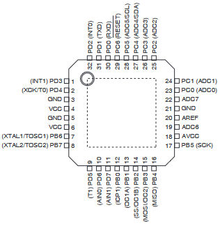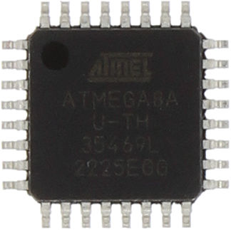 Niewielkich rozmiarów, wysokowydajny i energooszczędny mikrokontroler ATMEL w 32-nóżkowej obudowie SMD. Zasilany napięciem z zakresu od 2.7 V do 5.5 V, taktowany sygnałem do 16 MHz. Pamięć 8 kB Flash z możliwością odczytu podczas zapisu, 1 kB RAM, 512 B EEPROM. Posiada programowalny zegar nadzorujący z wewnętrznym oscylatorem, port szeregowy SPI i pięć wybieranych programowo trybów oszczędzania energii