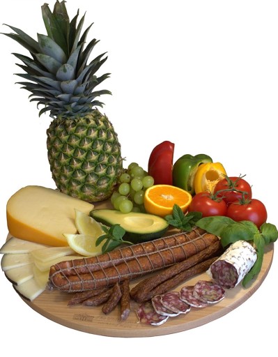 Ułóż okrągłą deskę serów, wędlin czy przekąsek dla gości na przyjęciu.