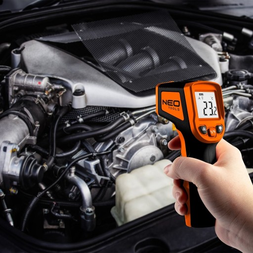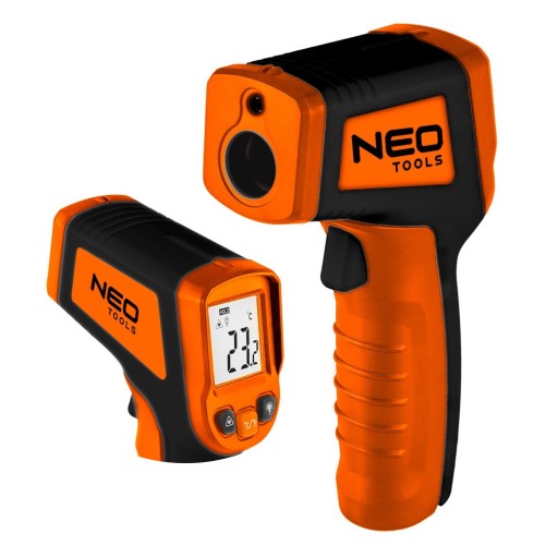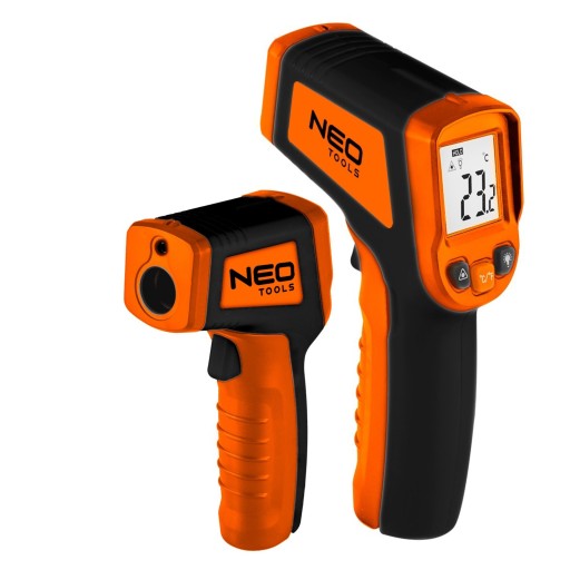 Pirometr, przyrząd do szacowania temperatury (C-50~400, F-58~752) 75-275 marki NEO to urządzenie służące do bezdotykowego pomiaru temperatury powierzchni obiektów z dużą dokładnością, do +/- 1,5% + 1,5 °C w zakresie -50 – 400°C. Często wykorzystuje się go do oszacowania temperatury przedmiotów niebezpiecznych lub w trudno dostępnych miejscach. Pirometr charakteryzuje się szerokim zastosowaniem i sprawdzi się np. w branży spożywczej (do pomiarów temperatury powierzchni żywności, monitorowania temperatury w ladach chłodniczych, mroźniach czy zamrażarkach), w branży przemysłowej (do monitorowania temperatury podzespołów maszyn przemysłowych, kontroli urządzeń elektrycznych i elektronicznych), w budownictwie (do lokalizacji wilgotnych ścian i sufitów, wykrywania przeciągów oraz prądów cieplnych), sprawdzania klimatyzacji i wentylacji. Przyrząd oferuje możliwość wykonania bezpiecznego pomiaru w intuicyjny sposób. Posiada podświetlany wyświetlacz i możliwość pracy w jednostce Celsjusza i Fahrenheita. Ma opcję automatycznego wyłączania. Zasilany jest 2 bateriami 1,5V AA, które dołączone są do zestawu. Posiada stopień ochrony IP54. Pirometr wyposażony został w moc lasera <1mW. Jego długość fali wynosi 650 nm, a klasa II. Czas odpowiedzi urządzenia to 500 ms, z kolei jego rozdzielczość optyczna wynosi 12:1. Narzędzie od marki NEO nie jest wyrobem medycznym. Polecane dla profesjonalistów, ekip remontowych oraz zakładów produkcyjnych.