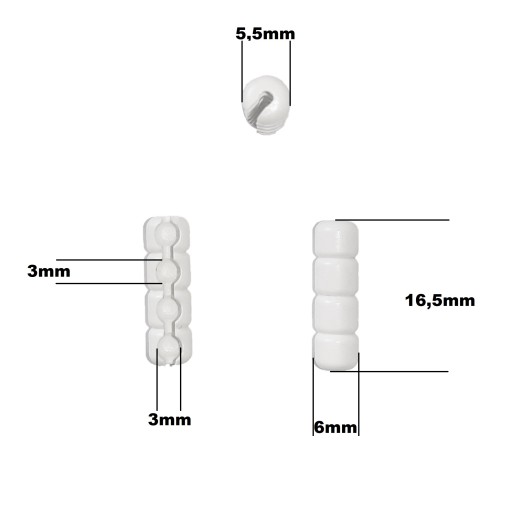 Łańcuszek do rolet cienki o średnicy koralika 3mm w kolorze białym.