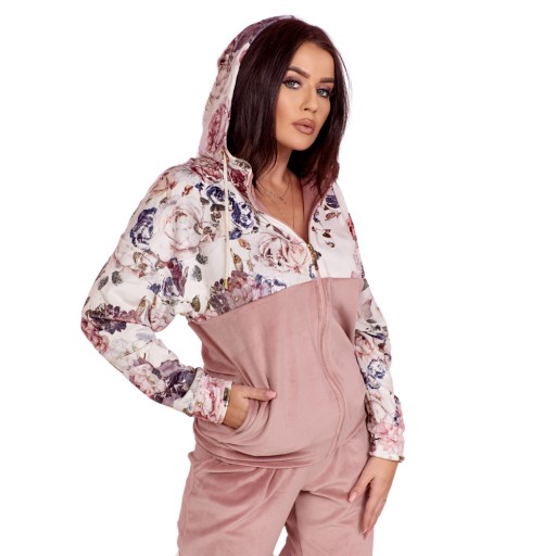 Piękny, kobiecy wzór przyciąga uwagę, a mięciutki, przyjemny w dotyku welurowy materiał zapewnia ciepło, wygodę oraz swobodę ruchów.