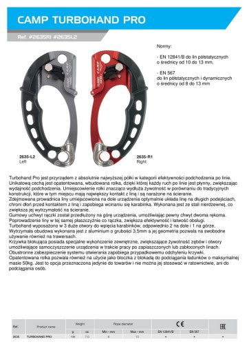 -Waga 185g-Kompatybilny z linami od 8mm do 13mm-Certyfikaty EN 12841/B EN569-Wersja Lewa i Prawa-Kolor Szary - lewy Czerwony - Prawy Czarny - Lewy i Prawy