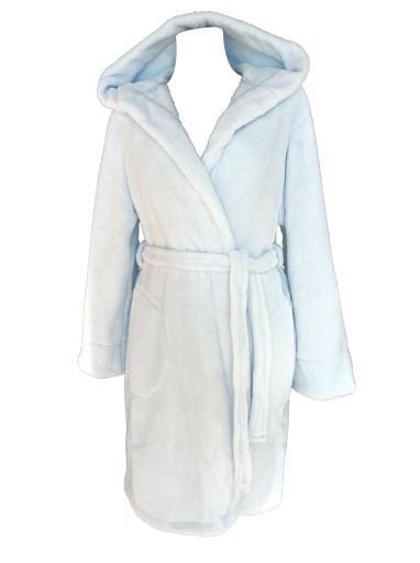 Ciepły i wygodny szlafrok damski, w kolorze błękitnym.