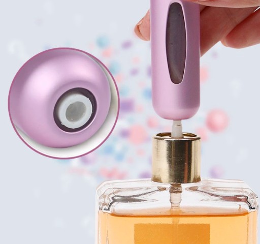 - Łatwe napełnianie w kilka sekund - wystarczy włożyć atomizer w dowolny flakonik perfum z odczepioną główką i kilkakrotnie napompować.