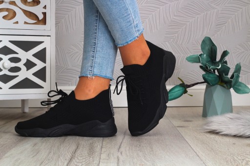 Damskie buty sportowe w kolorze czarnym. ❤ Wykonane z dobrych jakościowo materiałów. Sprawdzą się jako obuwie codzienne oraz sportowe. 😍 Sneakersy są lekkie i zapewniają wygodę oraz komfort użytkowania. Podeszwa stabilna, dobrze amortyzuje stopę.👍 Modny fason idealnie dopasuje się do wielu stylizacji! Dobrze prezentuje się na nodze. 💯