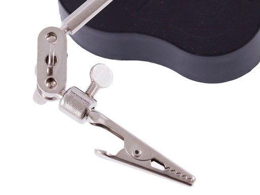 - Uchwyt posiada dwa ramiona zakończone krokodylkami z możliwością ich ustawienia pod dowolnym kątem.