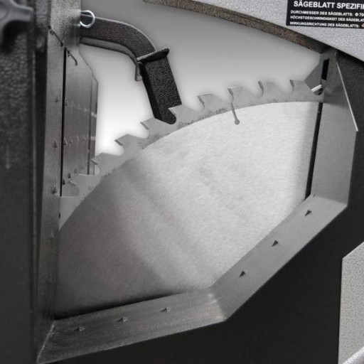 Drewno umieszczane jest na stole roboczym, który popychany jest w kierunku wirującej piły widiowej o średnicy 700mm.