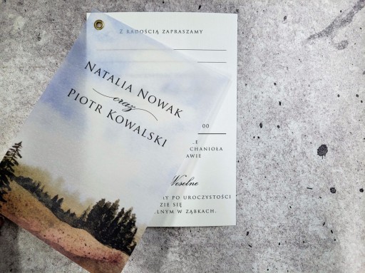 W naszej ofercie znajda Państwo także zaproszenia w tym motywie, z krajobrazem drukowanym na pięknej kalce