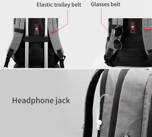 Plecak wyposażony jest w gniazdo usb, dzięki czemu nie ma konieczności wyciągania power banka z plecaka, aby naładować telefon. Uwaga, power bank nie jest częścią zestawu.