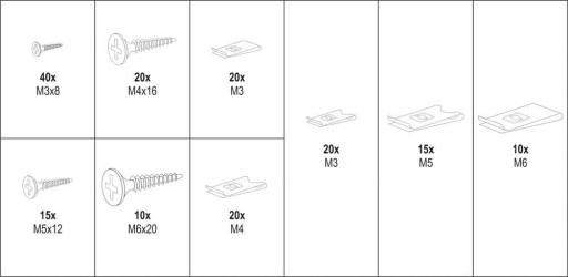 Zestaw 170 sztuk wkrętów i podkładek do karoserii. Zestaw zawiera rozmiary wkrętów i podkładek od M3x8 mm do M6x20 mm. Całość umieszczono w wygodnym opakowaniu typu "sortownik".