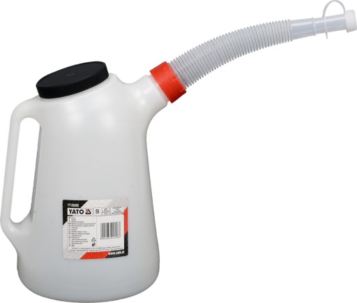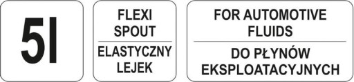 Praktyczny nalewak warsztatowy o pojemności 5 litrów. Wykonany z wytrzymałego tworzywa PE odpornego na płyny eksploatacyjne posiada praktyczny elastyczny lejek oraz przykręcaną pokrywę. Z boku nalewaka znajduje się praktyczna podziałka ułatwiająca dozowanie płynów.