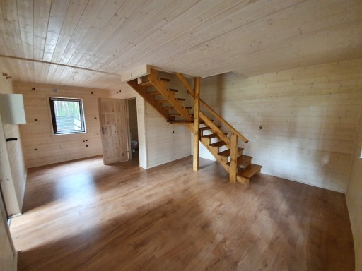 - Płyta OSB 22mm od góry i 8 mm od spodu, dwie warstwy foli paroizolacyjnej, podkład oraz panele podłogowe AC4 kolor do wyboru
