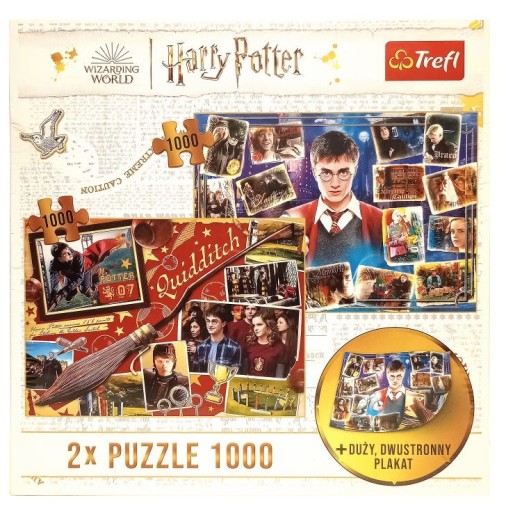 - Zawierają 2 układanki o wymiarach 683x480 mm z 1000 elementów nawiązujące do magicznego świata Harrego Pottera