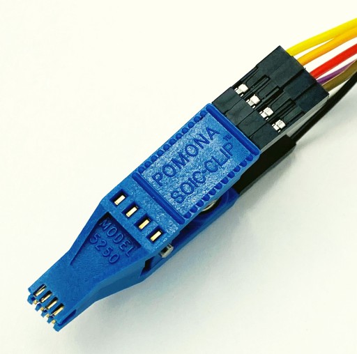 Klips testowy / pomiarowy SO8 (SOIC 8pin) / SOJ8- umożliwia badanie bądź programowanie układów (np. procesorów czy pamięci) w obudowach SO8 (SOIC 8-pin) lub SOJ8 bez konieczności ich wylutowywania z płytki drukowanej.