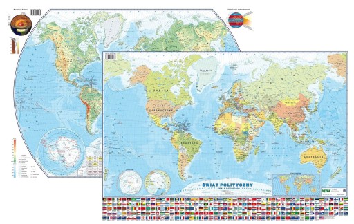 Dwustronna mapa podręczna świata - fizyczna i polityczna.