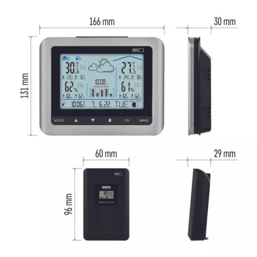 temperatura zewnętrzna: -20 °C do +60 °C, rozdzielczość 0,1 °C