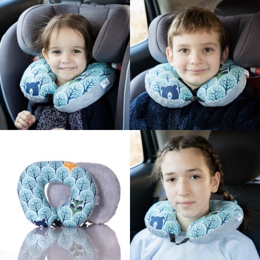 Dzięki zapięciu na nap poduszka nie wędruje po samochodzie tylko może zostać wpięta w zagłówek lub przypięta do pasa.