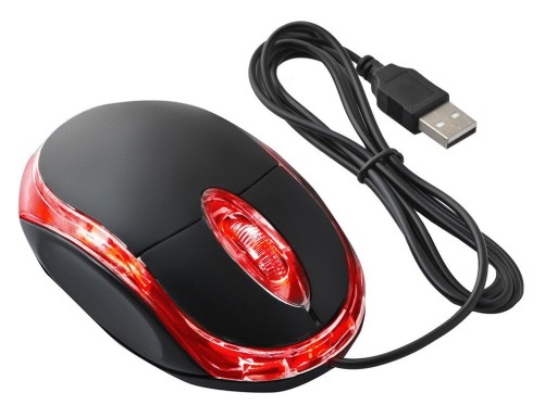 - Przewodowa myszka optyczna o kompaktowych wymiarach.