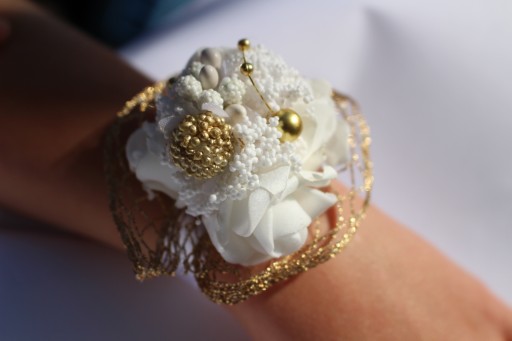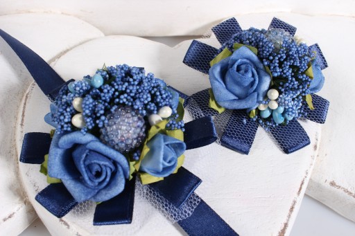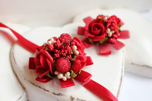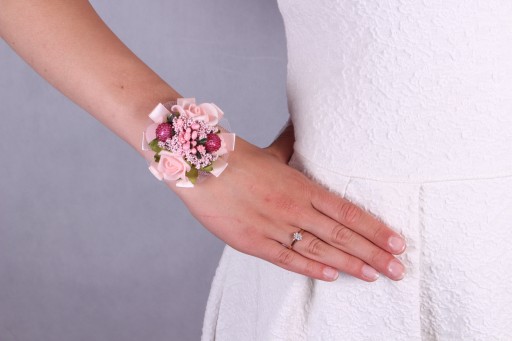 Do wyboru kotylion wiązany na rękę lub przypinka.