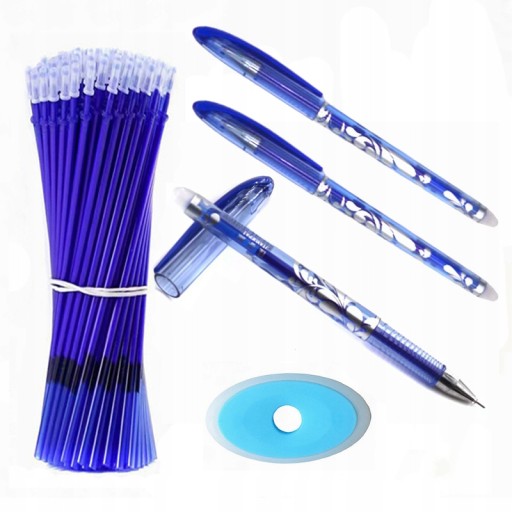 Zmazywalne długopisy 3x - wkłady 50x - jedna gumka 0,5 mm
