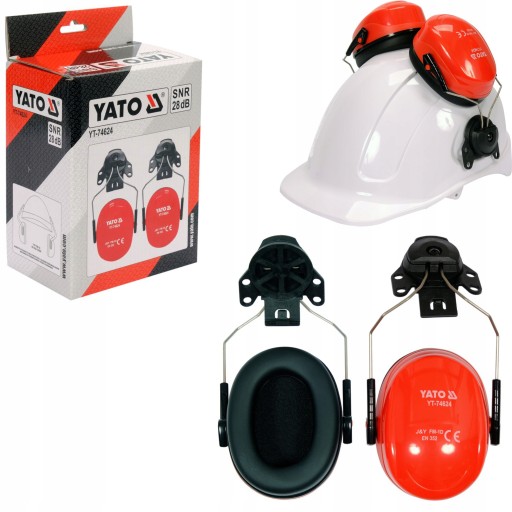 Nauszniki przeciwhałasowe YT-74624 z mocowaniem na kask. Obrotowy adapter umożliwia zamocowanie do kasków ze szczeliną o szerokości minimum 25 mm.