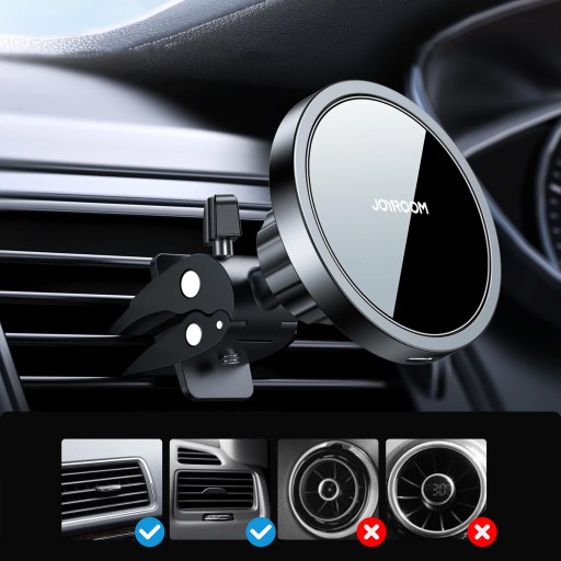 Nowoczesny uchwyt samochodowy Joyroom z opcją ładowania bezprzewodowego MagSafe to akcesorium, które doceni każdy kierowca. Uniwersalna konstrukcja modelu JR-ZS240 sprawia, że pasuje on do większości kratek nawiewu w różnych pojazdach samochodowych.