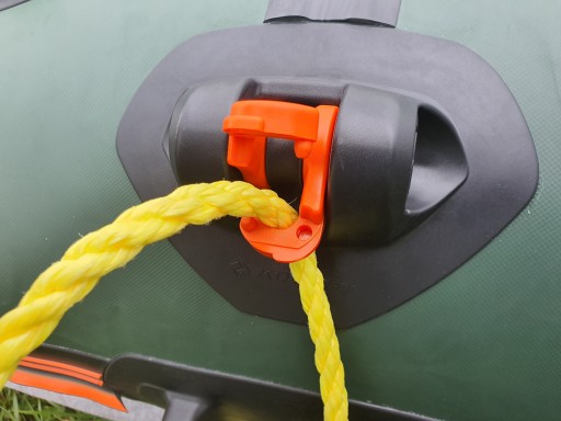 Na uwagę zasługuje także inne punkty jak rączki transportowe - estetyczne i rozmieszczone w najlepszych miejscach. Zauważyć trzeba przy tym że materiał z jakiego wykonano akcesoria jest najwyższej jakości ponieważ po wielu latach nie ma tendencji do odklejania się co ma miejsce często w innych markach pontonów.