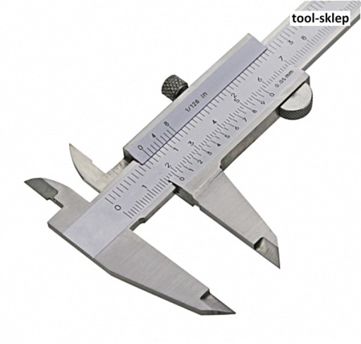 Zakres pomiaru 150 mm Długość szczęki pomiarowej 40 mm Noniusz dolny 0,05 mm Noniusz górny 1/128" Dokładność DIN 862 Głębokościomierz płaski