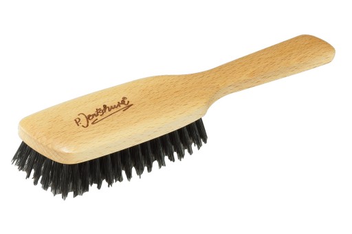 Szczotka wykonana z litego drewna bukowego.Twarda szczecina dzika posiada cienką i nieregularną strukturę. Dzięki temu dobrze rozczesuje włosy, doskonale je przy tym oczyszczając.