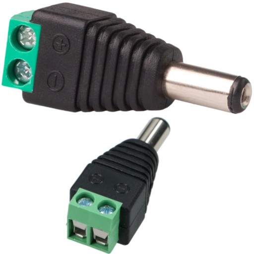 ⭐ Szybkozłącze na standardowy wtyk zasilania DC 2,1/5,5 mm do szybkiego montażu taśm LED mono lub kamer CCTV.