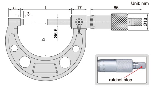 - Wrzeciono i kowadełko hartowane wykonane z płaskimi powierzchniami pomiarowymi wykończone nakładkami z węglików spiekanych, które zwiększają twardość i trwałość powierzchni pomiarowych.