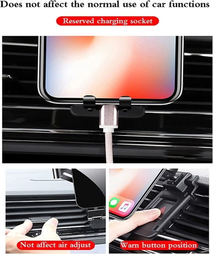 Uchwyt na telefon komórkowy moe mocno i bezpiecznie trzyma telefon komórkowy nawet na nierównych drogach. Moesz zmieni kierunek uchwytu po zamontowaniu jedn rk dziki czemu moesz bezpiecznie jedzi i nie uywa obu rk. Ramiona i nóki uchwytu na telefon s wyposaone w mikkie silikonowe podkadki które chroni telefon przed zarysowaniami i uderzeniami. Obrotowa gowica kulowa o 360 moe atwo regulowa uchwyt samochodowy na telefon w poziomie i pionie aby zapewni najlepszy kt widzenia. Samochodowy uchwyt wentylacyjny jest wykonany z wysokiej jakoci materiau który zapewnia dugotrwae uytkowanie i stabilno.