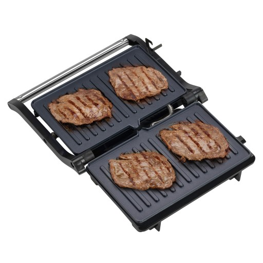 Równie szybko wyczyścisz grill, ponieważ jego płytki pokryte są nieprzywierającą powłoką.