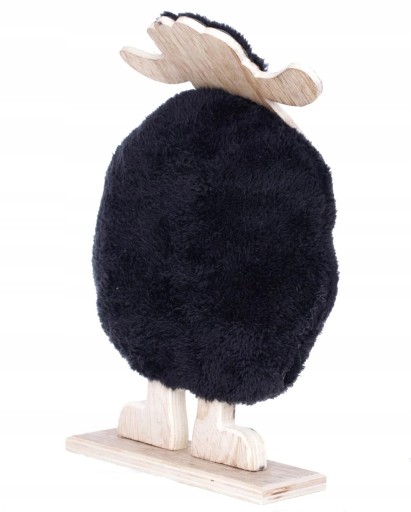 Owieczka została wykonana z drewna i wykończona pluszowymi elementami. Dzięki drewnianej podstawie dekoracje jest stabilna i spokojnie możemy postawić ja w dowolnym miejscu.