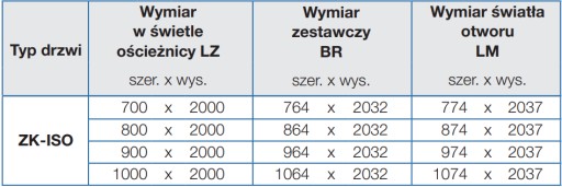 *** WYMIAR ŚWIATŁA OTWORU (ostatnia kolumna) - minimalny otwór zalecany do montażu poszczególnych drzwi ***
