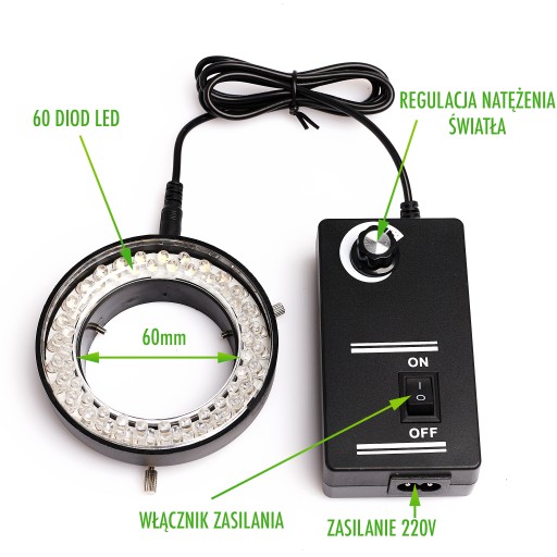 ✅ Źródło światła mikroskopu z 56 diodami LED ze ściemniaczem.
