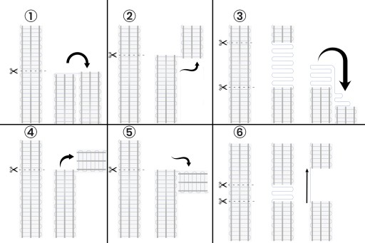- Przecinamy siatkę w wybranym miejscu i przekładamy resztę maty o 180° (stosowane przy omijaniu ściany lub innych obiektów)