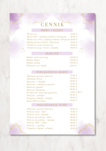 Прайс-лист на салон красоты, дизайн для печати