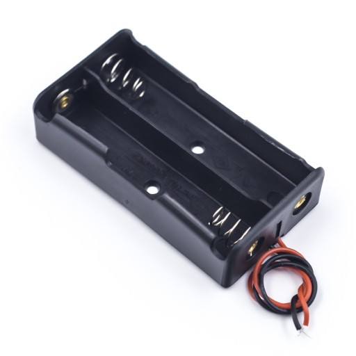 PODSTAWKA KOSZYK NA DWIE BATERIE TYP AA 2X1,5V KOLOR PODSTAWKI -CZARNY ROZMIAR 59X15X33mm WYPROWADZONE PRZEWODY CZARNY+CZERWONY