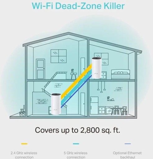 - Technologia TP-Link Mesh - jednostki Deco współpracują ze sobą, tworząc płynną sieć na powierzchni całego domu