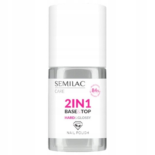 Baza i top do lakierów klasycznych to wyjątkowe połączenie 2 funkcji zamkniętych w jednym produkcje. W swojej formule zawiera bazę oraz top coat, dzięki czemu wydłuża trwałość manicure klasycznego do 7 dni oraz daje efekt utwardzonych paznokci. Zastosowany jako top zapewnia piękny połysk bez zarysowań, nieestetycznych smug i odprysków. Szybkoschnący lakier Hard & Glossy wysycha w 60 sekund. Formuła w ponad 84% oparta na składnikach pochodzenia naturalnego sprawi, że Twoje paznokcie będą wyglądały jak po pomalowaniu lakierem hybrydowym.
