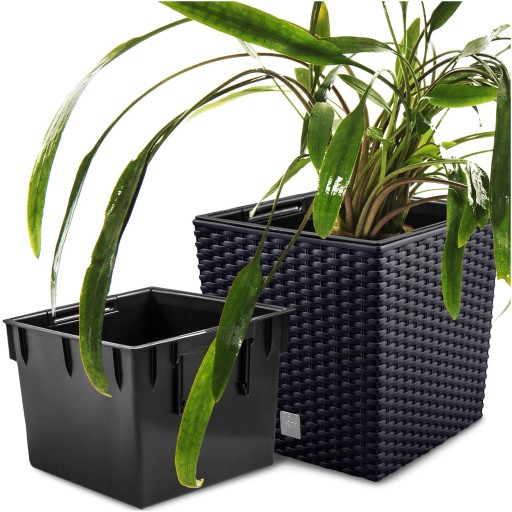 ⭐️⭐️⭐️⭐️ Kwadratowa doniczka z tworzywa sztucznego imitującego rattanową plecionkę doda uroku Twojemu ogrodowi i pięknie wyeksponuje rośliny. Elegancki design sprawdzi się również we wnętrzach.