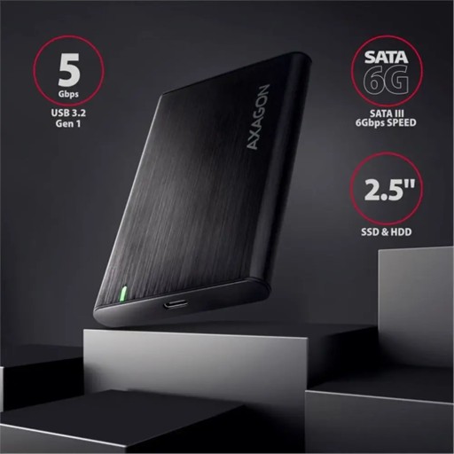 Bezśrubowa aluminiowa obudowa zewnętrzna AXAGON EE25-A6C RAW box z interfejsem USB 3.2 Gen 1 (USB 3.0) przeznaczona jest dla wszystkich dysków twardych 2.5 " SATA lub SSD. Dwustronne złącze USB-C na pudełku wraz z dołączonym kablem USB-C - > USB-A umożliwia niezawodne połączenie z komputerem.