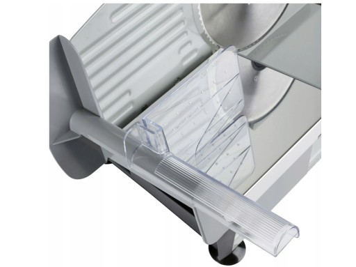 Solidna metalowa krajalnica z wygodnym, odchylanym stolikiem i zdejmowanym popychaczem. Wysokiej jakości ostrze ze stali szlachetnej pozwala zarówno ciąć wędlinę w cienkie plastry jak i ukroić sobie solidną pajdę wiejskiego chleba. Grubość krojenia może być dowolnie regulowana, co jest ułatwione przez wyraźny wskaźnik aktualnego ustawienia.