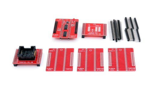 Zestaw adapterów dedykowanych do uniwersalnego programatora pamięci TL866II Plus. Umożliwiają obsługę układów w obudowach TSOP32, TSOP40 oraz TSOP48. Adaptery wpinane jest w podstawkę ZIF-40.