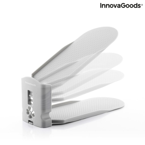 Regulowany organizer na buty do szafy Sholzzer InnovaGoods pozwala w łatwy sposób uporządkować obuwie. Ten innowacyjny, prosty i wygodny sposób na organizację obuwia jednocześnie umożliwia zaoszczędzić przestrzeń. Dzięki regulowanej wysokości, łatwo się dostosowuje do butów różnego rodzaju. Zestaw zawiera 6 niezależnych jednostek na 12 sztuk obuwia, co ułatwia umieszczanie ich w różnych miejscach i w różnych pozycjach.