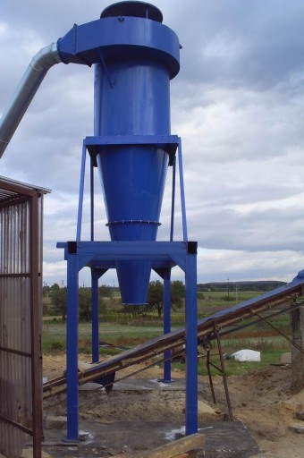 - oddzielania przenoszonych pneumatycznie materiałów (np. wiórów i trocin w zakładach drzewnych) od powietrza